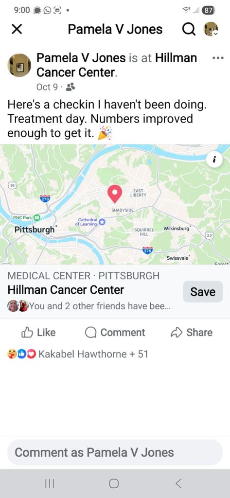 Health update: Pain and fatigue 5 out of 10 at start of day, increased post pemetrexed. We were at our 9 week for the B12 injection. No clue how bad I’d feel without it! 😅 (laughing emoji with a drop of forehead sweat)