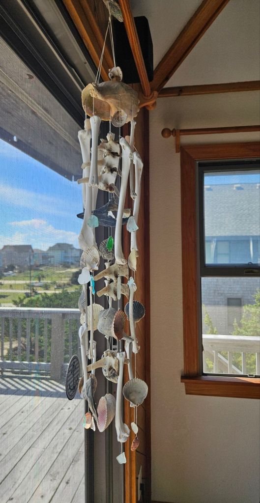 Windchime created by Amber Roth of Art by Amber Roth. Bones, shells, and sea glass! It is beautiful and I love it!