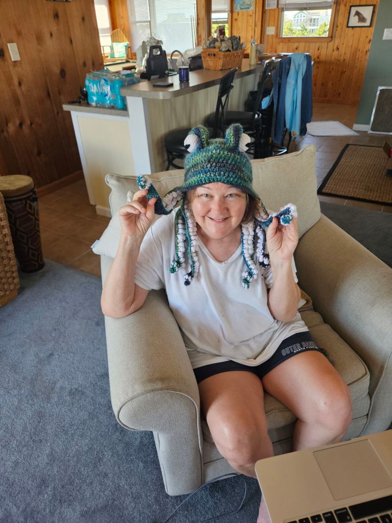 And finally, the wonderful silly winter hat, also from Amber Roth. I haven’t named it yet.